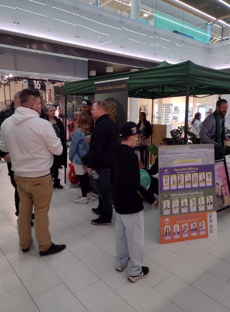 VKK kävi esittäytymässä Kouvolan Veturi - kauppakeskuksen vaalitorilla. Paikalla oli myös yhteisen Liitto Maaseudun Puolesta(VKK, Vapauden liitto, Kristallipuolue)- vaaliliiton ehdokkaita.